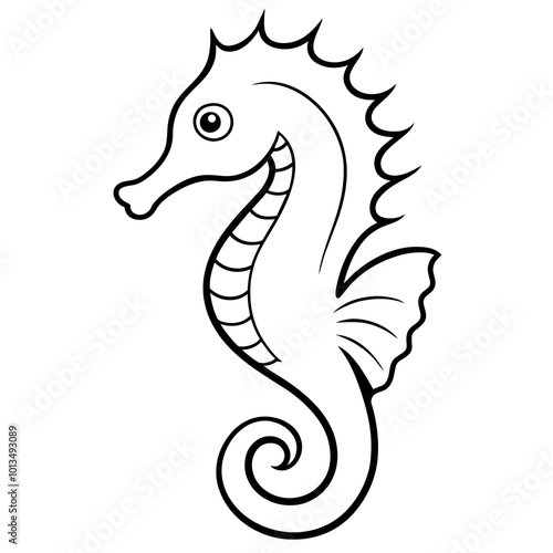 © Shamima, Naklejka premium Funny Seahorse Vector Illustration on White Background Cartoons, Clipart, Line Art Design, Funny seahorse vector art on white background, ideal for cartoons, clipart, and line art designs