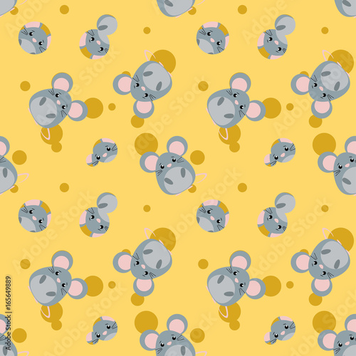 Fototapeta premium Funny seamless pattern with cute mouse and cheese. Flat design vector...