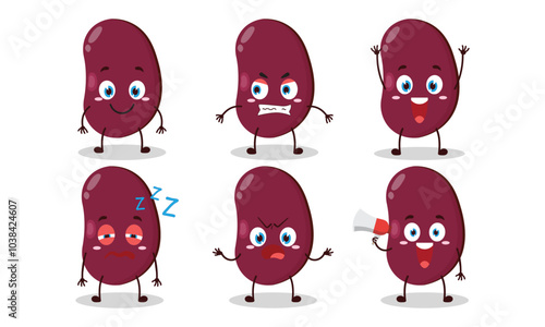 Fototapeta premium funny slice of red bean cartoon with many expressions design illustration