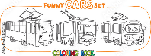 © passengerz, Fototapeta premium Funny small city transport with eyes coloring book