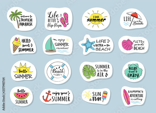 © Karolina Madej, Obraz premium Funny summer typography with icons - big set. Vector.