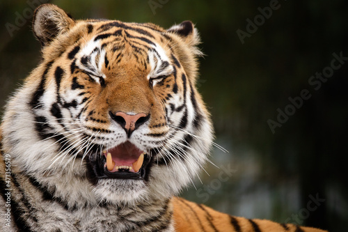 © Denis, Fototapeta premium Funny tiger face. Tiger laughs, smiles
