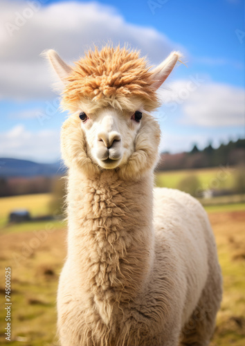 © Michal, Obraz premium Funny white alpaca portrait.
