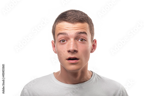 © Denis Rozhnovsky, Fototapeta premium Funny young guy portrait isolated on white background.