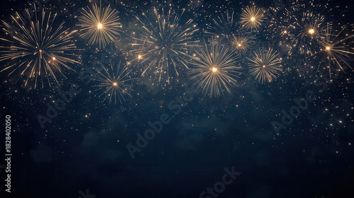 © fantasyart3d, Obraz premium Fuochi d’artificio dorati nel cielo notturno. Generative AI