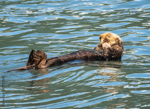 © steheap, Fototapeta premium Fur covered sea otter floating in the icy water of Resurrection Bay near Seward in Alaska
