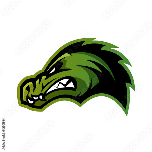 © pro, Naklejka premium Furious alligator head sport vector logo concept isolated on white background. Professional team predator badge modern design. Premium quality wild animal t-shirt tee print illustration.