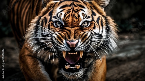 Fototapeta premium Furious tiger growling and sprinting aggressively, wildlife, action shot,...