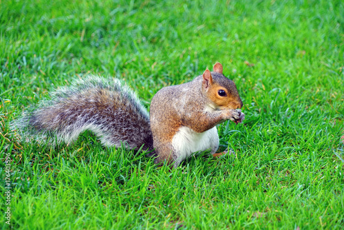 Obraz premium Furry Eastern gray squirrel (sciurus carolinensis) in the grass