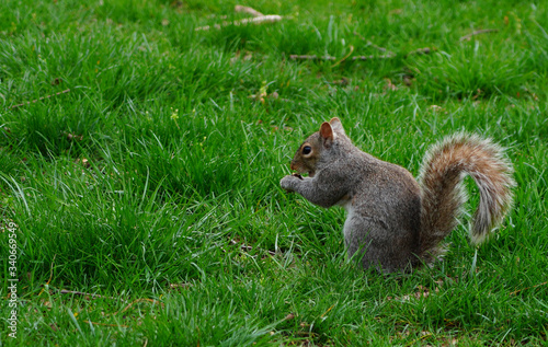 Obraz premium Furry Eastern gray squirrel (sciurus carolinensis) in the grass