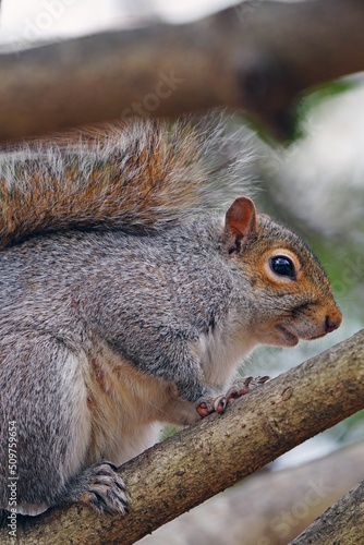 © eqroy, Obraz premium Furry Eastern gray squirrel (sciurus carolinensis) on a tree