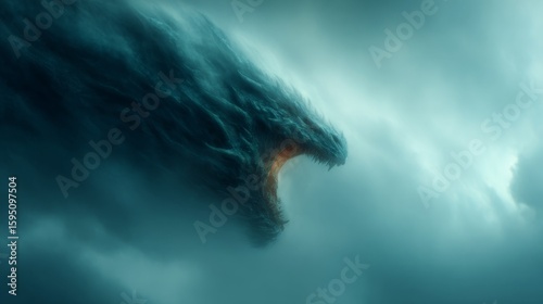 Fototapeta premium Fury of the Storm, a powerful creature emerges from swirling dark clouds,...