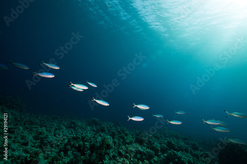 Fototapeta premium Fusiliers and coral in the Red Sea.