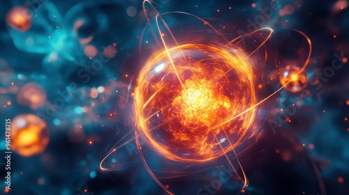 Obraz premium Fusion and fission processes within nuclear reactors, showcasing atomic...