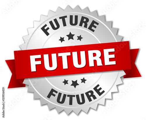 © Aquir, Obraz premium future 3d silver badge with red ribbon