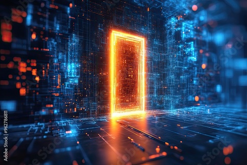 © Barra Fire, Obraz premium Future door in abstract digital cyberspace
