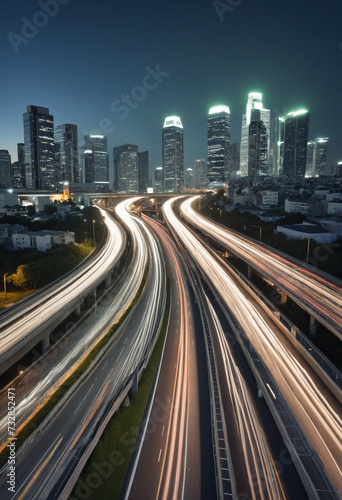Obraz premium "Future Eco-Friendly Highway Lighting Up Hong Kong's Urban Landscape"