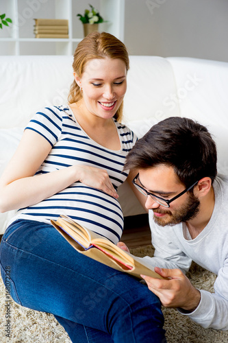 © Nichizhenova Elena, Fototapeta premium Future father reading a book