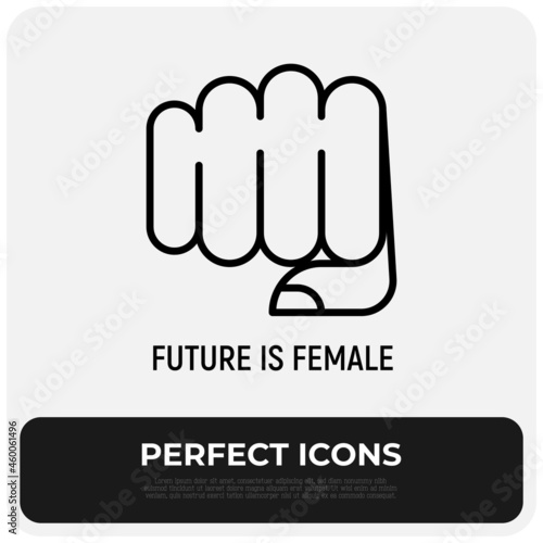 © AlexBlogoodf, Obraz premium Future is female thin line icon: women's fist. Modern vector illustration.