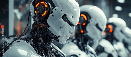 Fototapeta premium Future robots connected to human bodies through computer implants