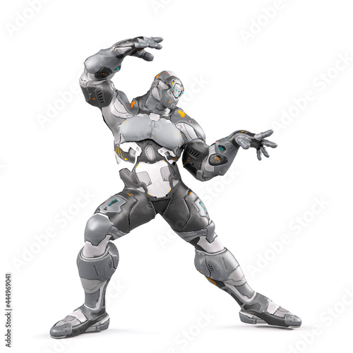 © DM7, Fototapeta premium future soldier is doing some magic moves on white background side view