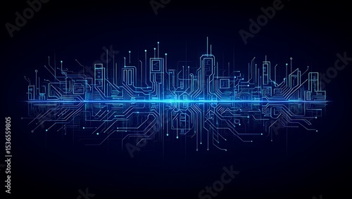 © Romin IT, Fototapeta premium Future Technological Skyline Glowing with Digital Connectivity and Data