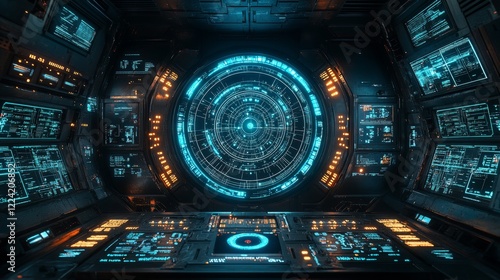 © Black, Obraz premium Future technology spacecraft control room