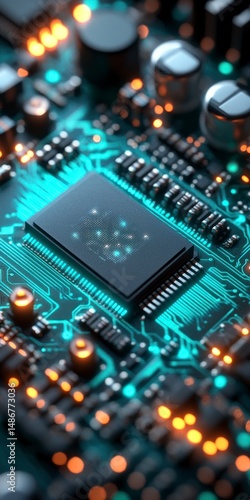 Obraz premium Futuristic, abstract, and illuminated circuit board with central processor