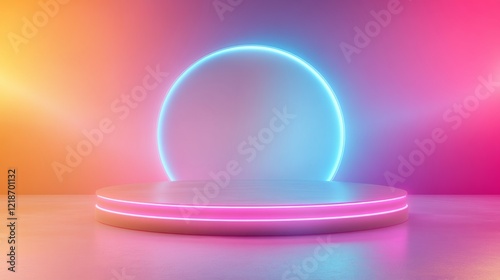 © Nasreen, Obraz premium Futuristic abstract background with modern pedestal for product display and technology showcase, featuring clean lines and minimalist design