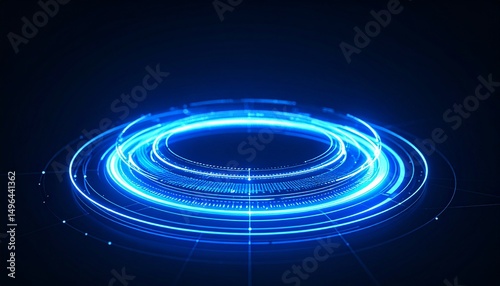 Obraz premium futuristic abstract blue light effect with rotating circles