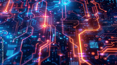 Obraz premium Futuristic abstract circuit board pattern in cyberspace, digital technology...