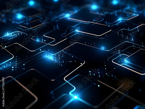 © yelosole, Obraz premium Futuristic Abstract Circuit Networking Blockchain Concept Digital Technology Background