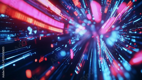 © Amien19, Obraz premium Futuristic Abstract Data Stream with Red and Blue Light Particles and Lines
