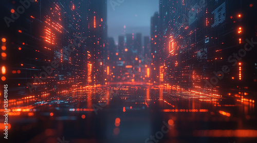 Fototapeta premium Futuristic abstract HUD interface with glowing holographic elements and data streams Symbolizing advanced technology artificial intelligence and digital innovation in a sci-fi virtual environment