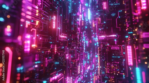 © Kitta Studio, Naklejka premium Futuristic Abstract Network of Colorful Neon Lights and Circuits