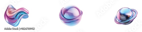 Obraz premium Futuristic abstract shapes with glossy iridescent finish