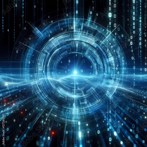 © JY, Obraz premium Futuristic abstract technology digital neon light grid pattern background