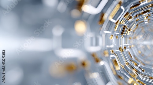 © Char_mon, Obraz premium Futuristic Abstract Tunnel with Metallic Hexagonal Structure and Golden Elements