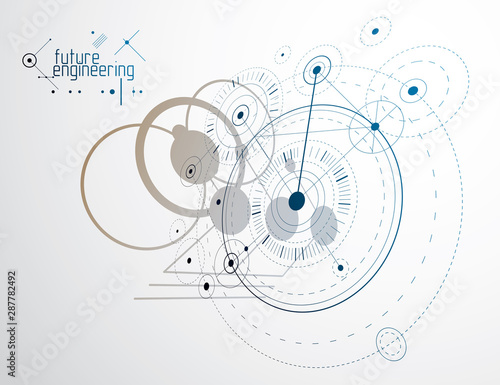 © Sylverarts, Obraz premium Futuristic abstract vector technology background. Mechanical engineering wallpaper.