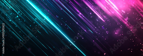 Fototapeta premium Futuristic abstract wallpaper with neon light streaks and glowing particles in blue and magenta. Ideal for tech, sci-fi, and creative designs, adding dynamic energy and modern style.
