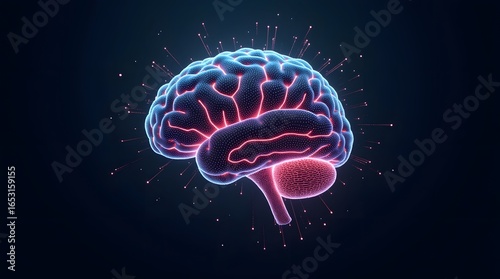 Fototapeta premium Futuristic AI brain made of neon circuits and data.