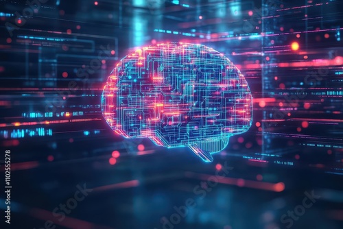 Obraz premium Futuristic AI brain with glowing circuits, floating in a digital void, neon...