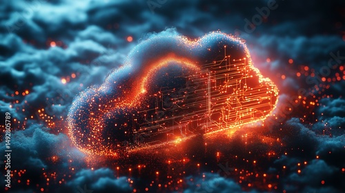 © yang, Obraz premium Futuristic AI chip in a cloud network symbolizing decentralized computing