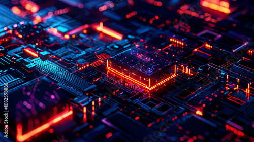 Obraz premium Futuristic AI-driven cybersecurity framework with glowing firewalls and...