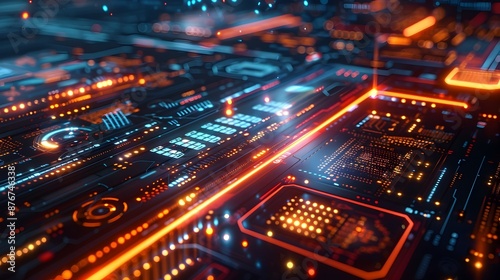 Obraz premium Futuristic AI-enhanced Digital Landscape with Vibrant Neon Lights and Aesthetic