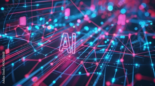 Obraz premium Futuristic AI Neural Network Visualization in Vibrant Digital Setting