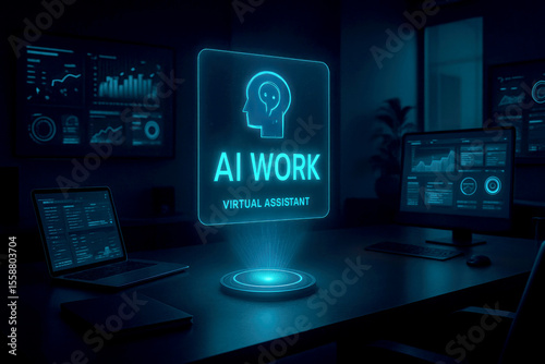 Fototapeta premium Futuristic ai office virtual assistant hologram displaying data artificial intelligence