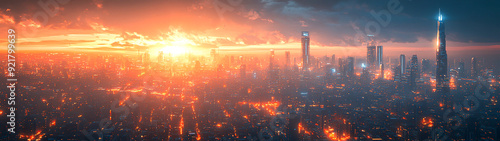© wannapong, Fototapeta premium Futuristic AI-Powered Cityscape: Revolutionizing Urban Life with Advanced Technology Integration