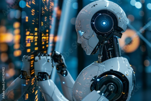 © Sandu, Fototapeta premium Futuristic AI Robot Interacting with Holographic Display