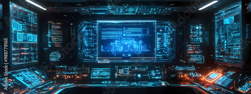 © Manuel, Obraz premium Futuristic AI System Interface with Neon Schematics